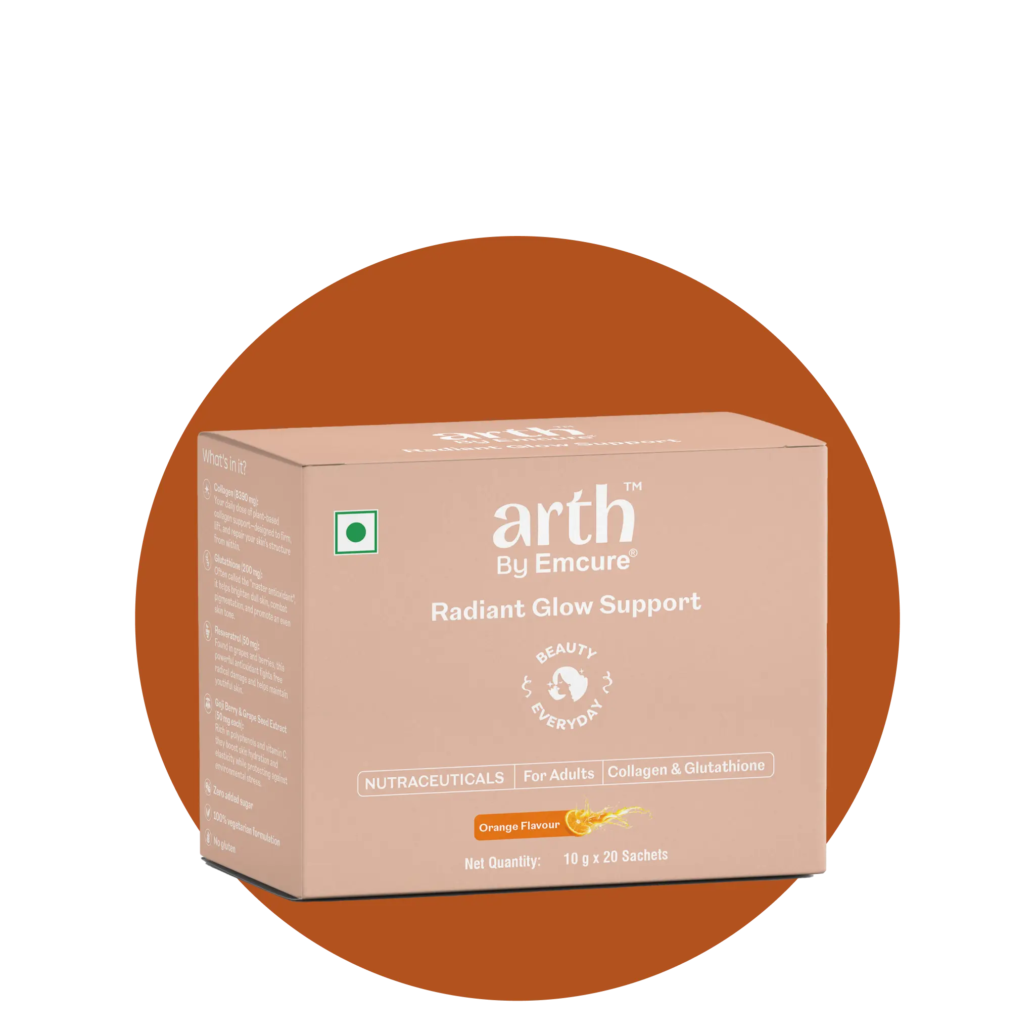 Arth Radiant Glow Support is made using plant-based collagen boosters and is 100% vegetarian. Our product does not contain any marine or animal collagen.